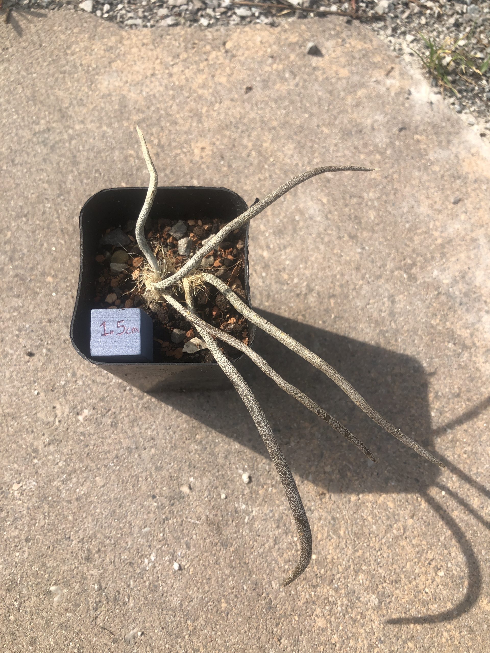 Native to northeastern Mexico, this critically rare cactus, only growing in one small location is highly prized by collectors for its unusual form, compact growth, and rarity in cultivation. Mature plants may produce stunning yellow star-shaped flowers, adding even more beauty to this already remarkable species. Its form is unlike anything else in the cactus world. Named after the mythical protectress Medusa whom had living venomous snakes in place of her hair, and could turn any being to stone just with her gaze.